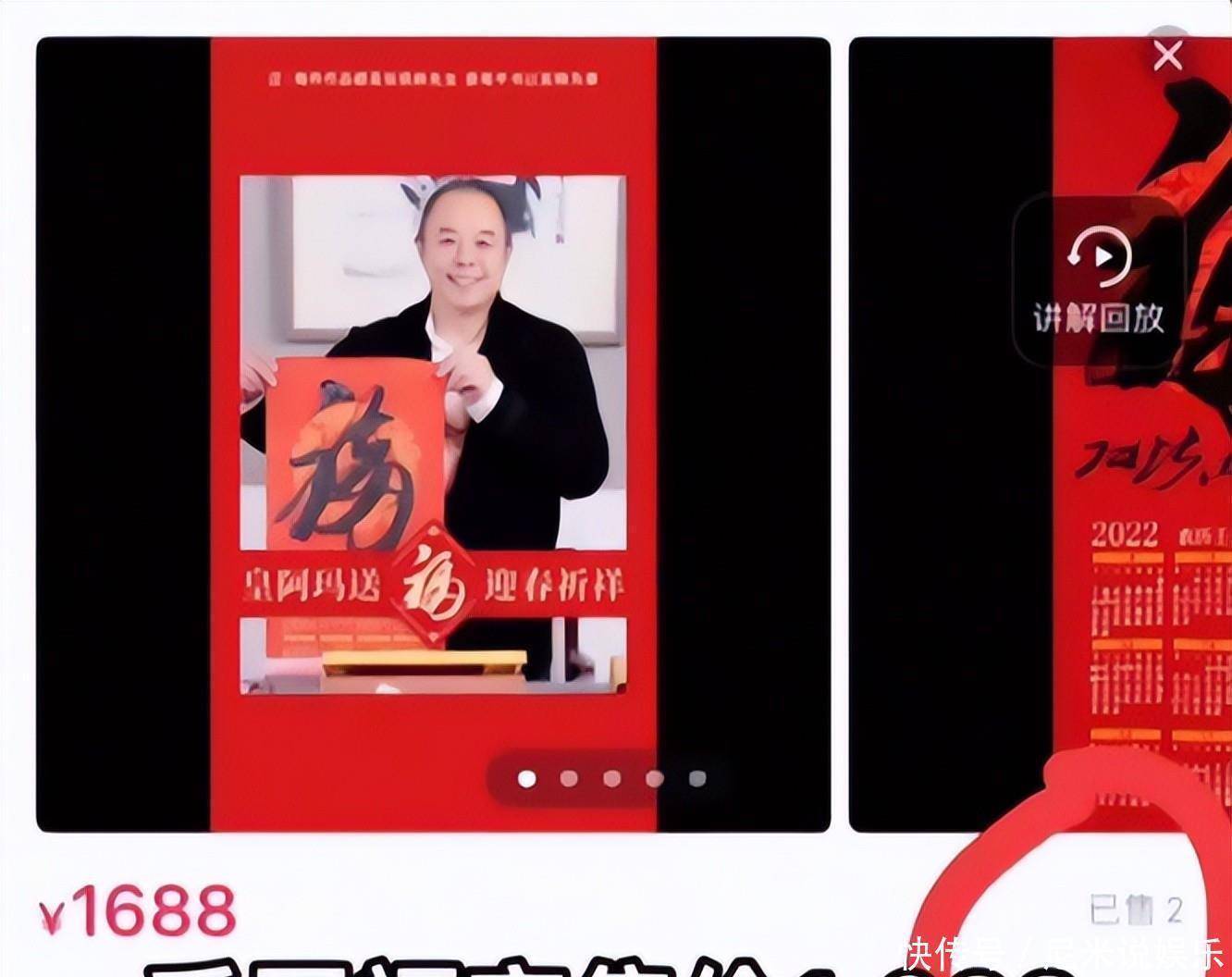 大战网友不说,还往直播间带货。一副毛笔字定价十万,最后直播间甩,只卖出两单,去年书法展万一张“福”字,被专业书法家P图当场打假,说“幼儿园水平”。网友又翻年他在《还珠格格》亲笔题字,发现其实剧组代笔。